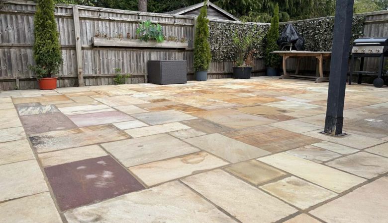 We transformed the outdoor area by infilling an existing swimming pool and creating a spacious new patio using high-quality sandstone slabs.